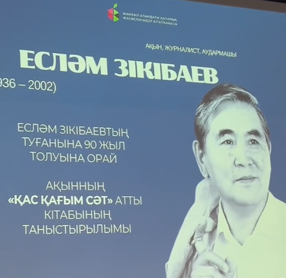 16 сәуір күні Жамбыл атындағы ҚЖК-да ақын Есләм Зікібаевтың туғанына 90 жыл толуына орай «Қас қағым сәт» атты кітабының таныстырылымы өтті.