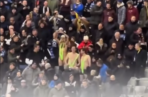 Кеше Астанада өткен «Қайрат» — «Брюгге» ойыны кезінде үш шетелдік жанкүйер өрескел әрекетке барды. Олар киімін шешіп тастап, атышулы «Борат» фильміндегі оғаш лыпамен тұрып алды.