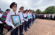 Жамбыл облысында қаза тапқан көпбалалы полицейді соңғы сапарға шығарып салды