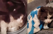 Мысығын кір жуғыш машинаға салып жуған (Видео)