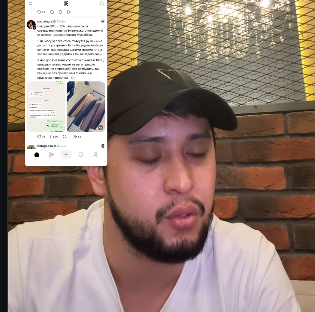 Актер Асқар Жұмабекті әріптесі Айнұр Нарзиева күш көрсетті деп айыптаған болатын. Асқар Жұмабек әлеуметтік желіде осы жанжалға қатысты өз жауабын берді.