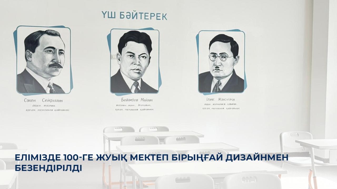 «Адал азамат» бағдарламасы шеңберінде әзірленген бірыңғай дизайн-кодпен 100-ге жуық білім ордасы жаңарып, ұлттық болмыс пен заманауи стиль үйлесім тапты.