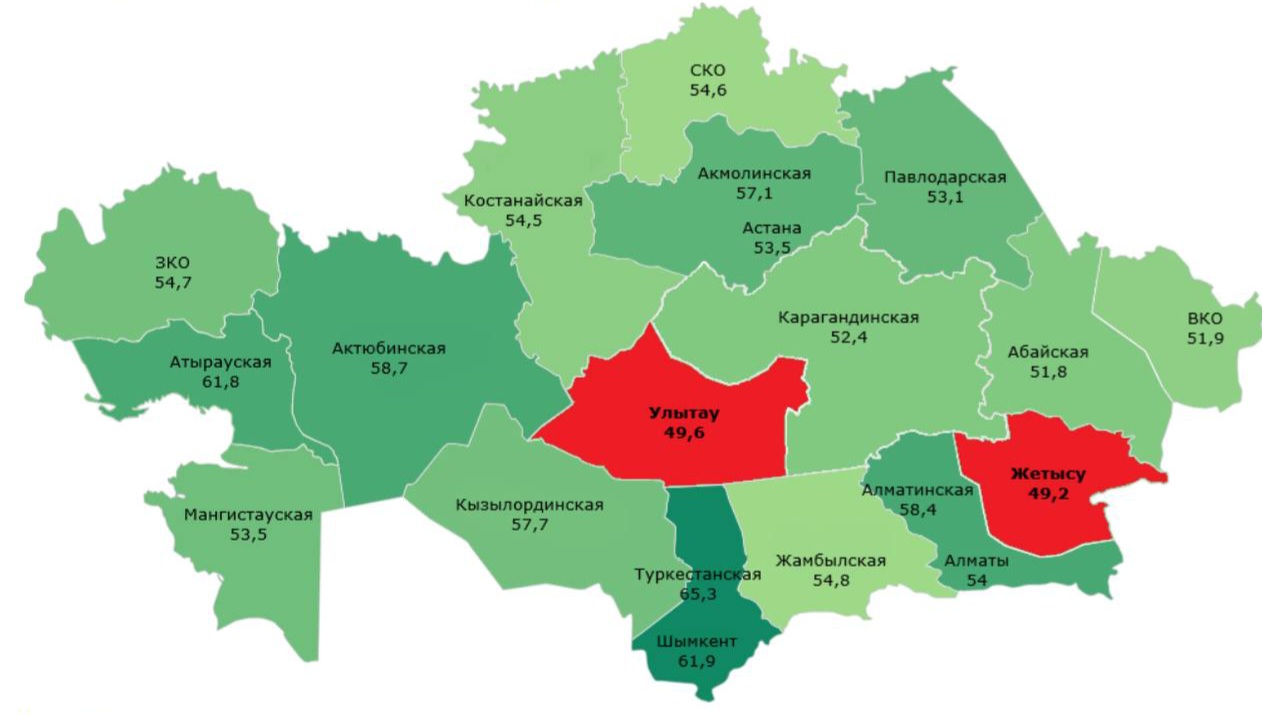 ▫️В зоне сокращения — Жетысу и Улытау.