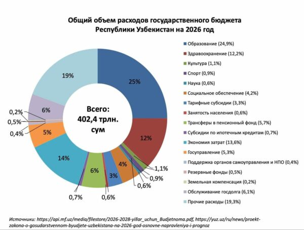 Узбекистан идет по пути социальной трансформации. 55% его бюджета (220 трлн сум) направлены на образование и здравоохранение, при расходах в 19% ВВП. Это самая «социальная» структура в регионе. Узбекистан строит новую модель государства, где ставка тоже делается на человеческий капитал и инфраструктурную модернизацию. Фискальная нагрузка высока, но она подкреплена активным реформированием управления и цифровыми решениями.