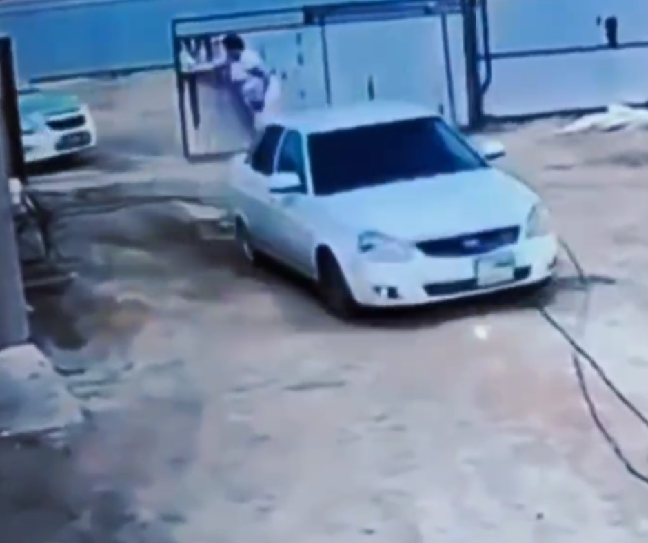 Жас жүргізушінің қашып кетуіне көмектеспек болған 57 жастағы әйел полиция көлігінің алдыңғы бамперінің дәл алдында қақпаны тарс жауып тастаған.