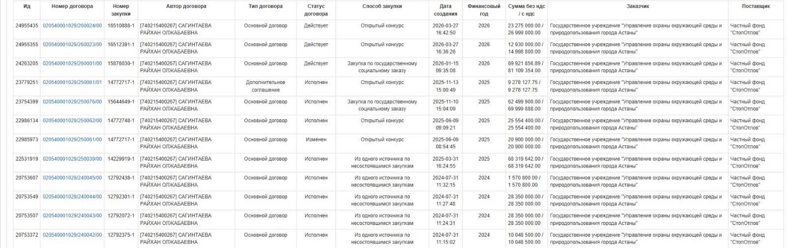 По данным портала госзакупок, фонд «СтопОтлов» за три финансовых года заключил более десяти контрактов, как через открытые конкурсы, так и через закупки из одного источника по несостоявшимся тендерам. Крупнейший из действующих договоров, оформленный как государственный социальный заказ в январе 2026 года, составляет 81,1 млн тенге с НДС.