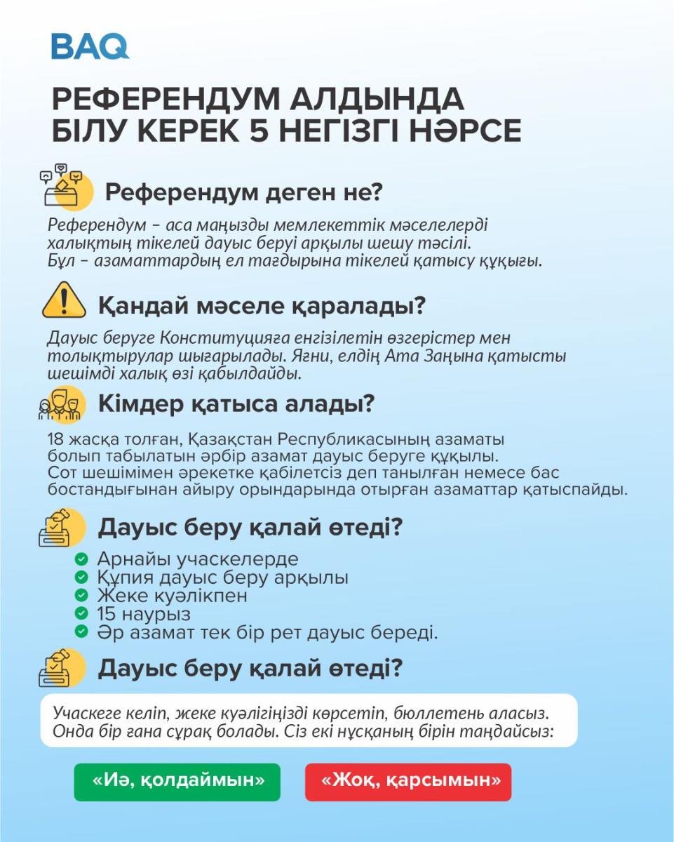 Референдум қарсаңында негізгі 5 нәрсені білген дұрыс.