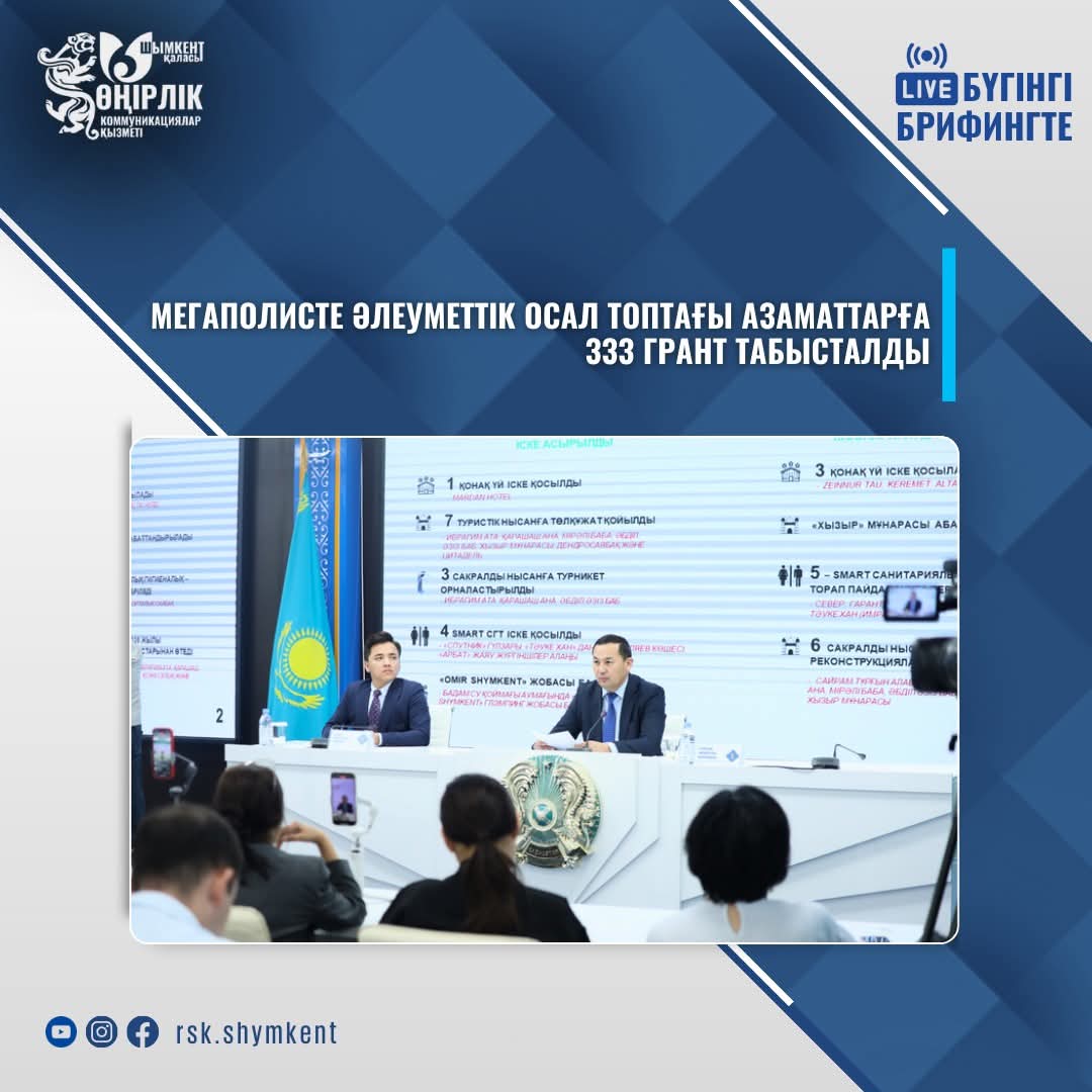 Шымкент қаласында әлеуметтік санаттағы тұрғындарды қолдау мақсатында 333 азаматқа 400 айлық есептік көрсеткішке дейінгі (1,57 млн теңгеге дейін) қайтарымсыз мемлекеттік грант берілді. Бұл туралы бүгінгі өткен брифингте қаласы әкімдігінің ресми өкілі, әкімнің орынбасары Сәрсен Құранбек айтты.