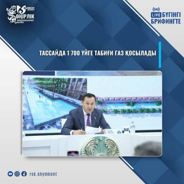 Шымкент қаласының әкімі Ғабит Сыздықбеков апта басында Тассай шағынауданының тұрғындарымен бірге табиғи газ қосу рәсіміне қатысты. Газбен қамтамасыз ету жобасының екінші кезеңі аясында 1 700 абонентке көгілдір отын жеткізілмек. Өңірлік коммуникациялар қызметі алаңында Шымкент әкімдігінің ресми өкілі – қала әкімінің орынбасары Сәрсен Құранбек осы жайында толық мағлұмат берді.