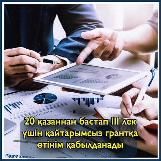 Өз кәсібін ашқысы келетіндер үшін қажет мәлімет: 20 қазаннан бастап ІІІ лек үшін қайтарымсыз грантқа өтінім қабылданады