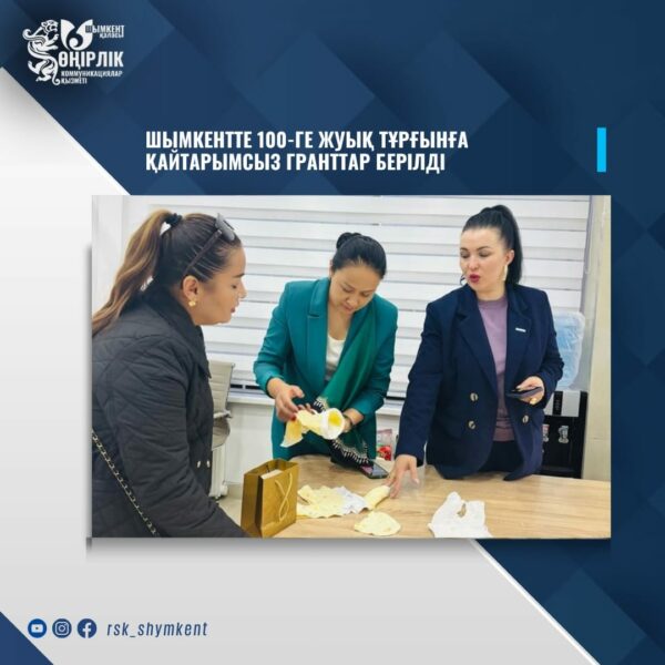 Шымкент қаласында әлеуметтік осал санаттағы азаматтарды қолдау мақсатында 99 тұрғынға 400 АЕК-ке дейінгі (1 572 800 теңге) қайтарымсыз грант берілді.