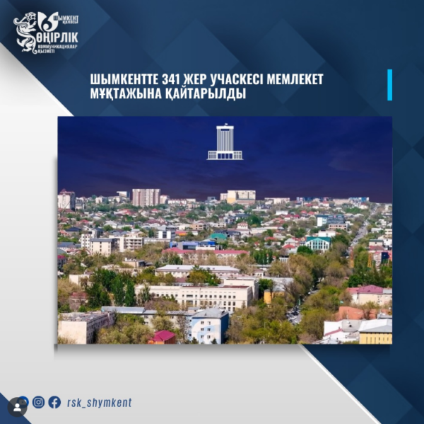 Биыл жыл басынан бері Шымкент қаласының жер қатынастары басқармасы қала инфрақұрылымын дамыту мақсатында 341 жер учаскесін мемлекет мұқтажына алынды. Бұл жұмыстар қаланың Бас жоспарына және қала әкімдігінің тиісті қаулыларына сәйкес жүргізіліп отыр.