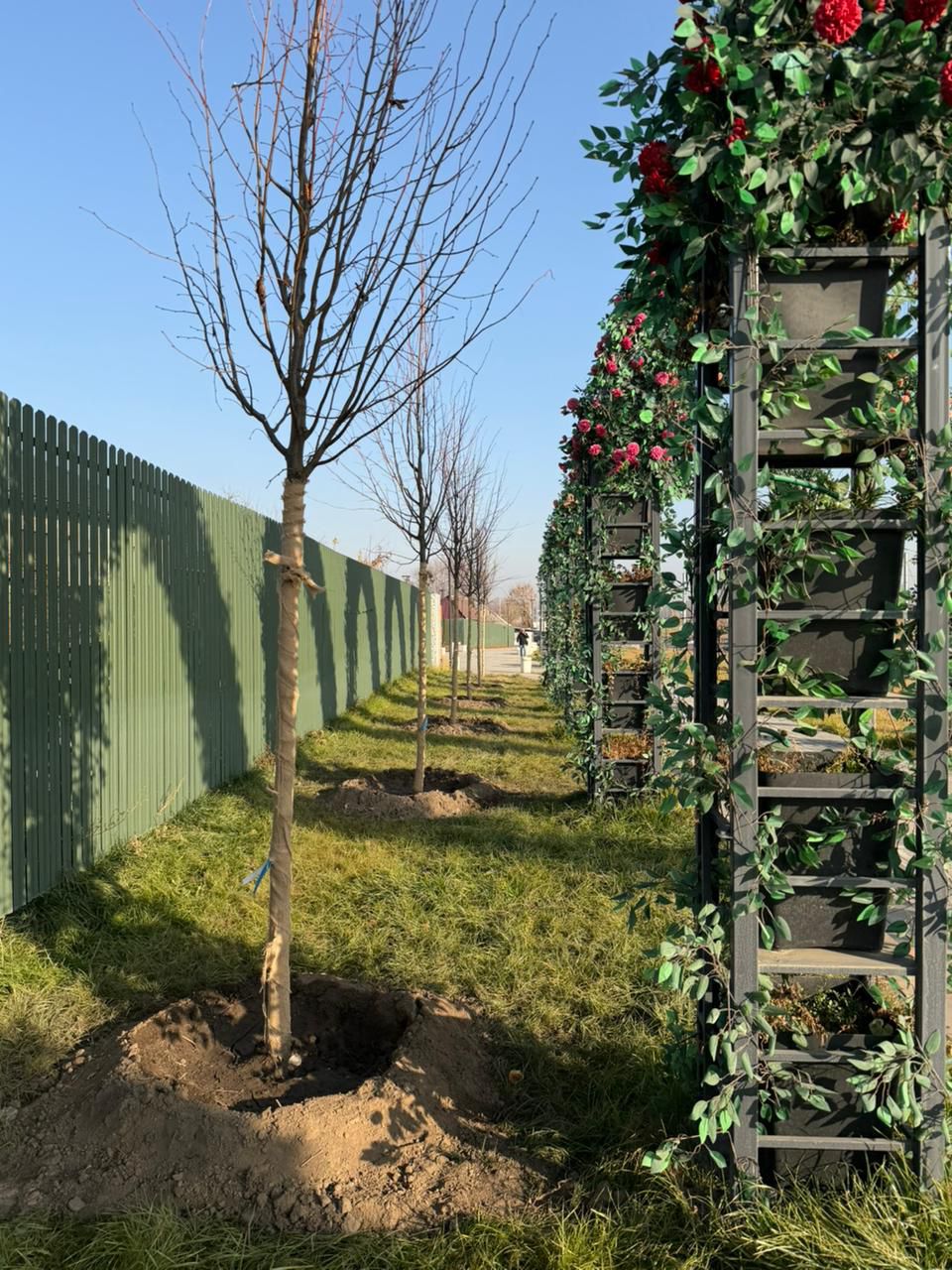 Жолайырықтың айналасында қоғамдық кеңістіктерді кешенді көріктендіру толық аяқталды. Жалпы аумағы – 3,4 гектар. Мұнда 30,4 мың м² аумақ көгалдандырылып, 5,8 мың м² кеспе тас төселді, суару жүйесіне арналған жеті ұңғыма бұрғыланды және 3,5 гектарға автоматты суару жүйесі орнатылды. Бұдан бөлек, 14 мың бұта, 192 ағаш және 2 400 гүл егіліп, екі альпілік төбе жасалды.