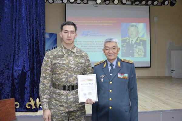 Студенттер атынан сөз сөйлеген Айдар Ахмет пен Дильназ Серікова аға буынның жауынгерлік дәстүрін абыроймен алға жалғастыруға, еліміздің қорғаныс қабілетін нығайтуға лайықты үлес қосамыз деп уәде берді.