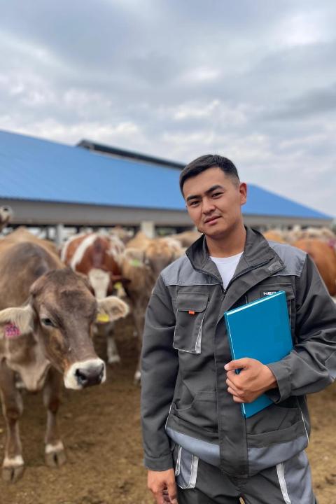 Сегодня Бауыржан отвечает за профилактику, вакцинацию и лечение 1700 голов КРС пород швицтаун и симменталь. Благодаря его работе предприятие значительно повысило продуктивность и качество молока, а вместе с тем — и экономические показатели.