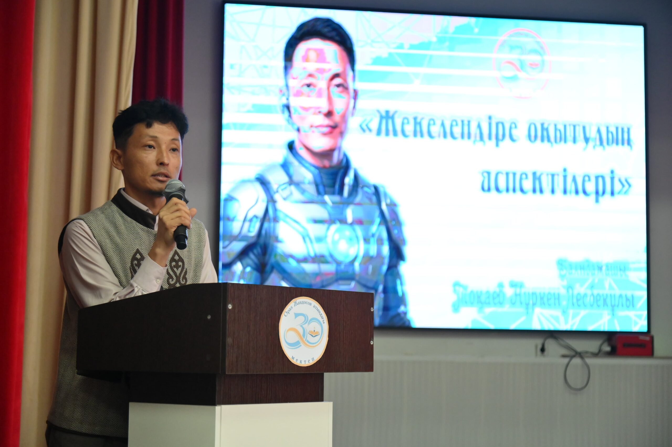 Қазақ тілі мен әдебиеті пәнінің мұғалімі Нұркен Тоқаев жекелендіре оқытудың негізгі аспектілері туралы баяндама жасап, ЖИ құралдарын тиімді пайдаланудың жолдарын түсіндірді. Оның айтуынша, дұрыс бағытталған цифрлық құралдар оқушының ынтасын арттырып, сабаққа қызығушылығын күшейтеді.